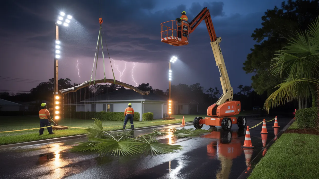 When severe weather strikes, you rely on 24/7 crews for hazard mitigation-securing hangers, clearing conductors with utility coordination, and stabilizing compromised root plates.